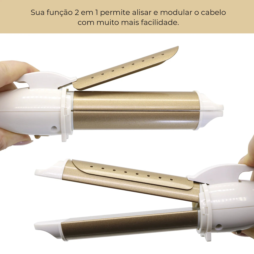 Descubra a liberdade de um cabelo impecável com o Dual Glam, o 2 em 1 que transforma seu visual com praticidade e sofisticação.